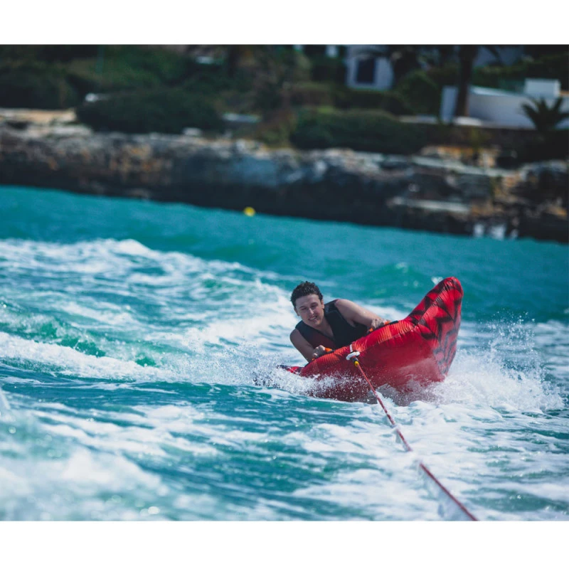 Cette bouée est très résistante car elle est en PVC d’épaisseur 0.6 mm. De plus elle est recouverte d’une housse en nylon de 420 deniers pour être plus solide à la traction.