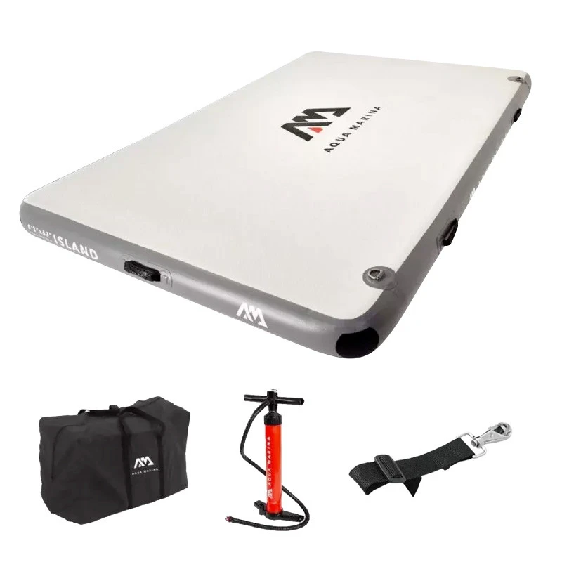 La plateforme gonflable Aqua Marina Island est un îlot flottant parfait pour de nombreuses activités comme nager, s’amuser sur l’eau, se détendre ou même travailler sur la coque de votre bateau. Construite dans des matériaux résistants, ses dimensions autorisent de 1 à 4 personnes dessus et son astucieux système d’oeillets permet de l’attacher à des supports extérieurs et même de fixer plusieurs plateformes entre elles si besoin !